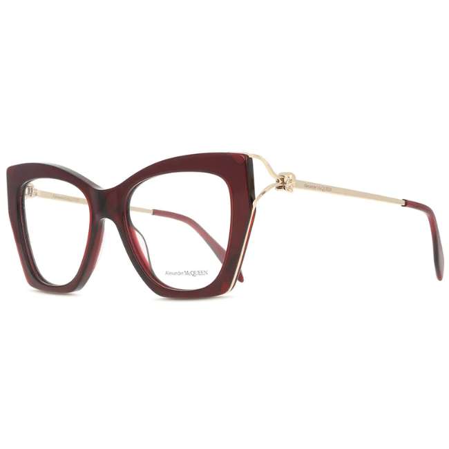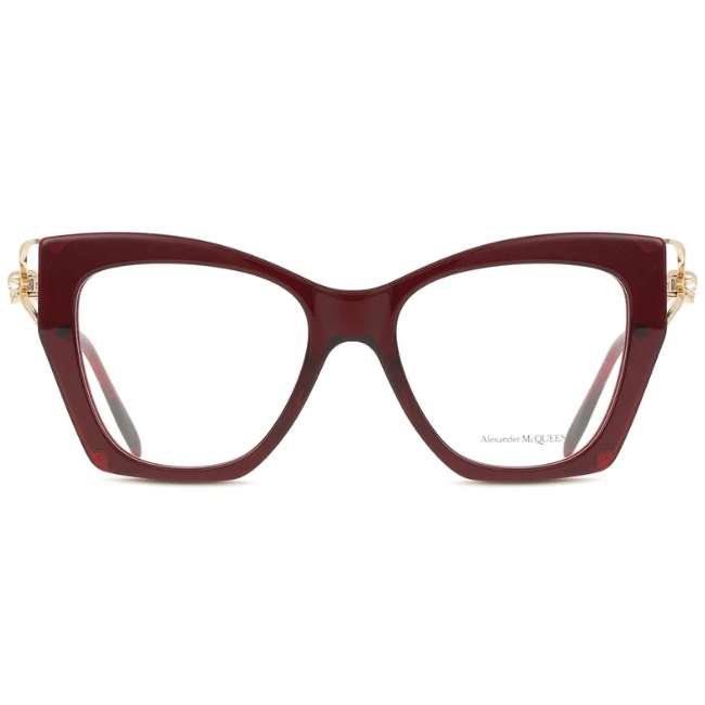 Alexander McQueen AM0376O 003 Women’s Eyeglasses – Burgundy / Seal Logo