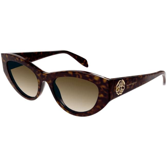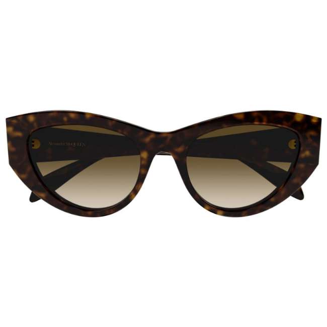 Alexander McQueen AM0377S 002 Women’s Sunglasses – Havana / Gold Seal Logo