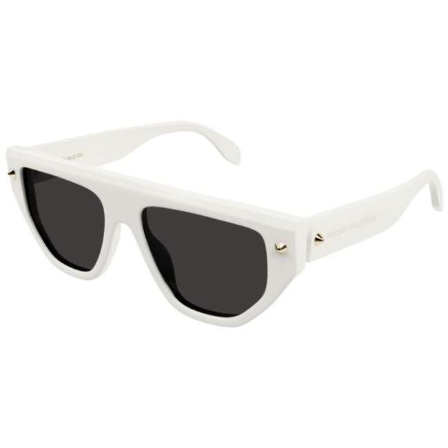 Alexander McQueen AM0408S 003 Unisex Sunglasses – Ivory / Flat Top