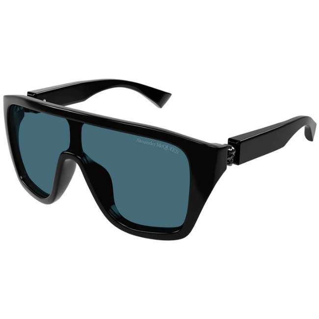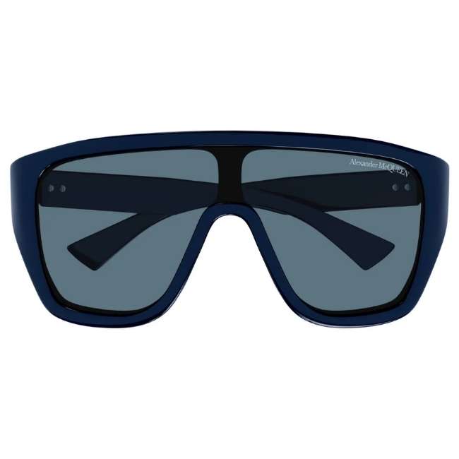 Alexander McQueen AM0430S 004 Men’s Sunglasses – Blue / Logo Bar Mask