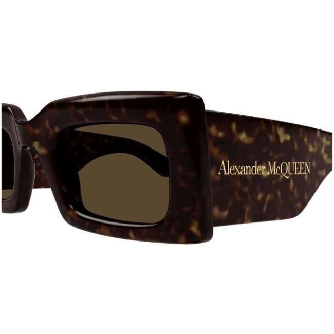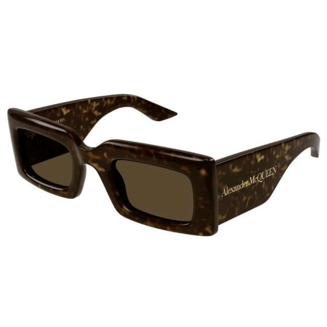 Alexander McQueen AM0433S 002 Women’s Sunglasses – Havana / Punk Rivet Rectangle