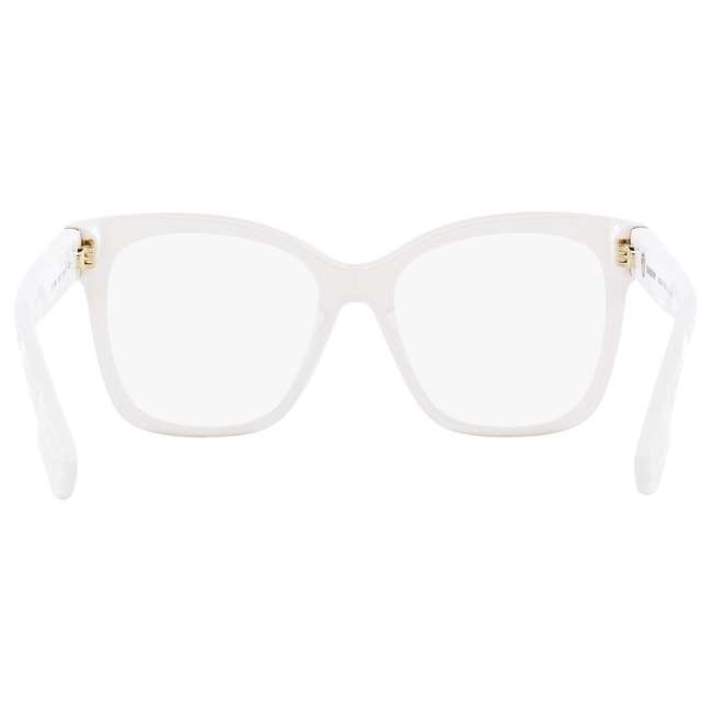 Elevate your daily vision with the Burberry BE2363 White optical frames. Burberry defines this “Margot” model by using a trending Milky Opal (3007) finish. This semi-translucent texture softens the bold acetate. It creates a “cloud-like” aesthetic that is far more sophisticated than solid white.