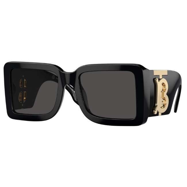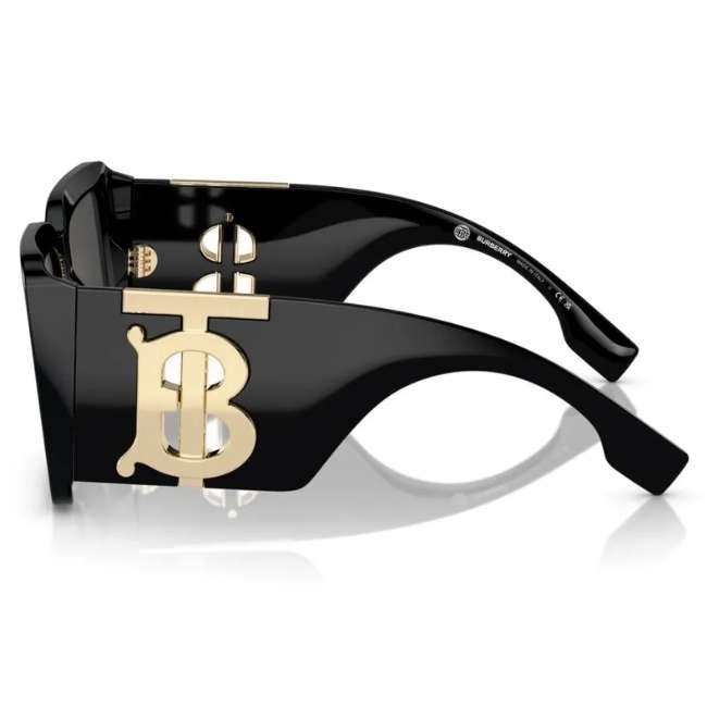 The design showcases a powerful, architectural square silhouette in timeless Black (300187). Thick, sculpted temples display the interlocking Thomas Burberry (TB) Monogram, a symbol of the house’s modern evolution.