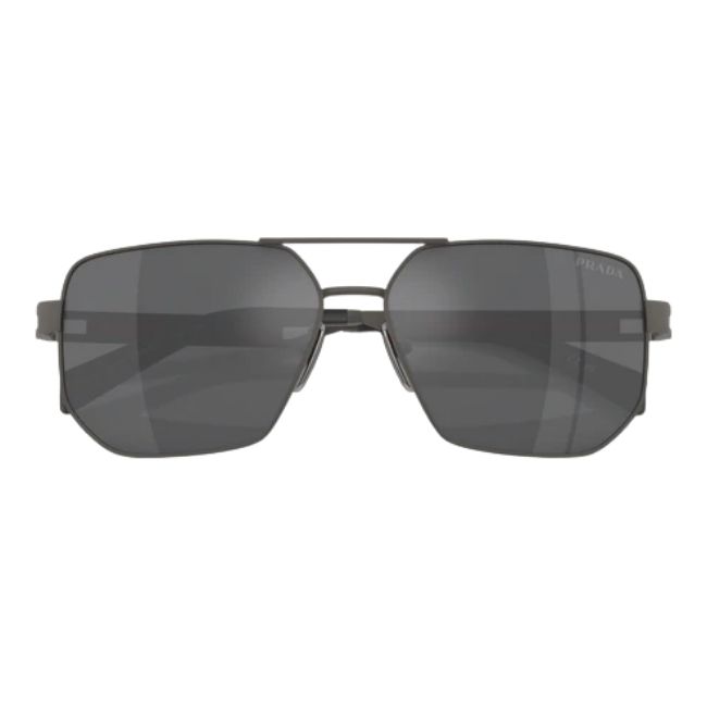 Prada constructs the frame from lightweight, durable metal in a sleek matte finish. Consequently, the eyewear feels robust yet comfortable for all-day wear. Moreover, the distinctive double-bridge design adds architectural stability and a masculine edge to the classic Pilot silhouette.