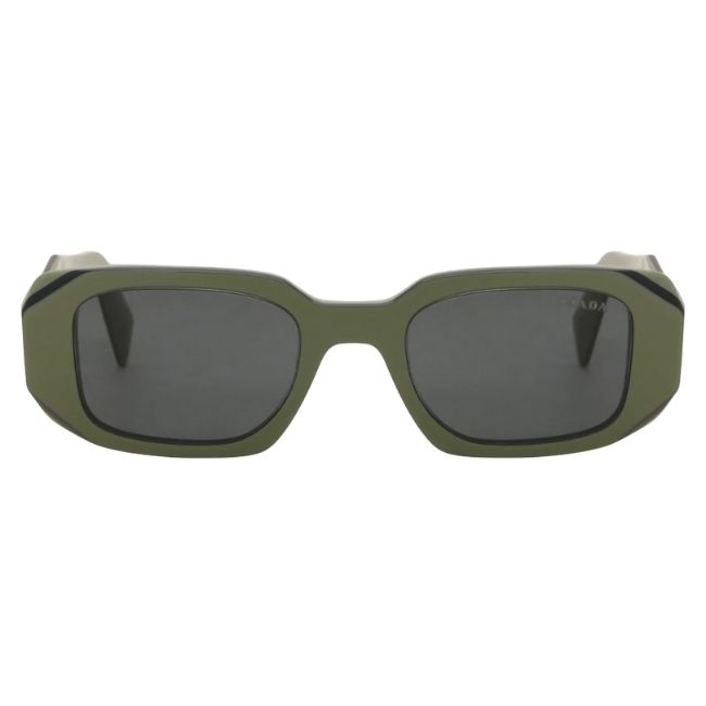 The Prada Symbole PR 17WS Sunglasses (Model 1355S049) bring a utilitarian edge to high-fashion eyewear. This model targets the trendsetter who wants a unique alternative to traditional black frames.