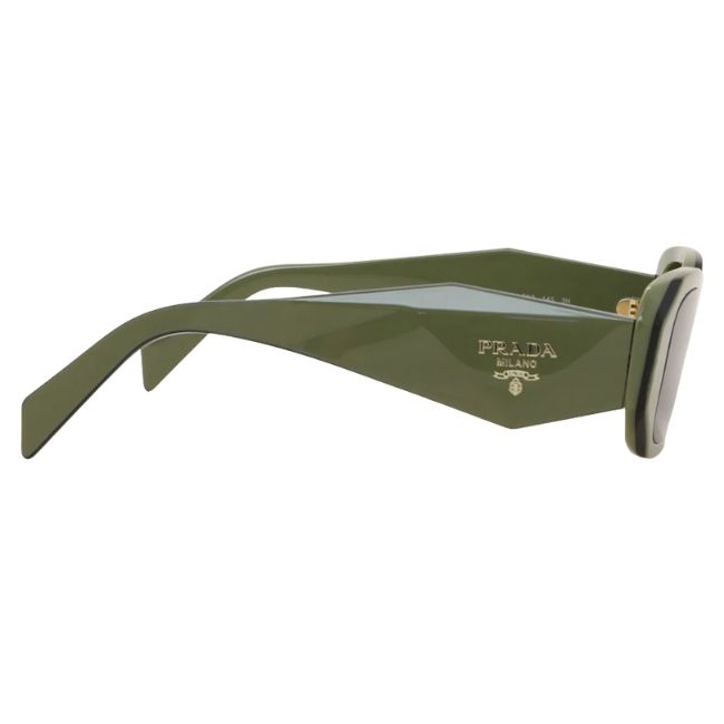 Prada crafts this frame from premium “Military Green” acetate. This muted olive tone offers a sophisticated, earthy aesthetic. It pairs perfectly with modern streetwear styles. The front features the collection’s signature faceted cut. This geometric sculpting creates volume and depth. It makes the frame look substantial yet refined. The temples showcase a 3D deconstructed interpretation of the triangle logo. This architectural detail is an instant status symbol.