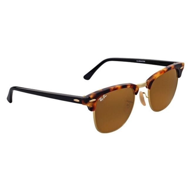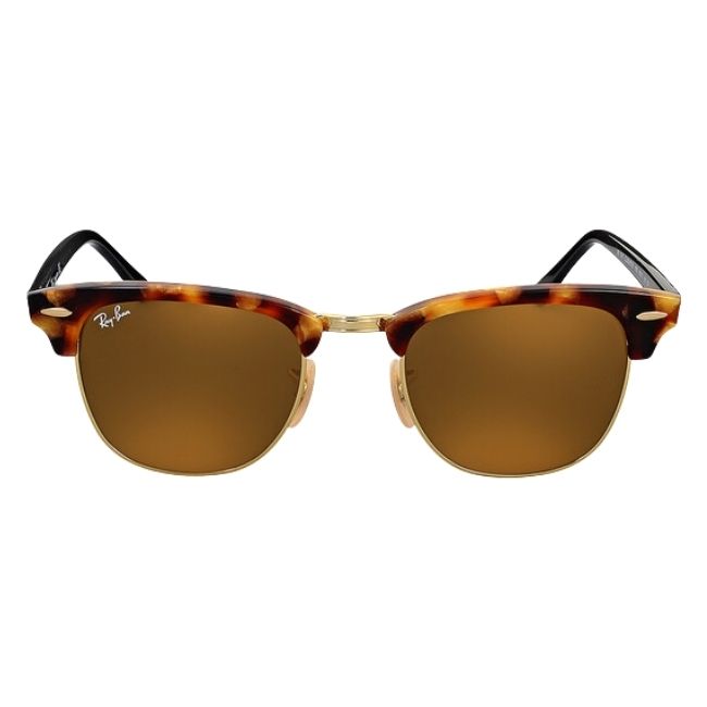 The Ray-Ban Clubmaster Classic Sunglasses RB3016 1160 49 are a definitive symbol of retro-intellectual style. Specifically, this model revitalizes the 1950s brow line silhouette with a “Spotted Brown Havana” acetate finish, which offers a richer, more textured pattern than standard tortoise. Moreover, the warm acetate brow bar contrasts beautifully with the Arista gold metal rims. Therefore, it is the perfect accessory for those who want to channel a vintage vibe with a distinctive, artisanal twist.