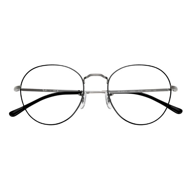 The Ray-Ban Round Metal II Optics 0RX3582V bring a contemporary edge to a vintage icon. Specifically, this model, also known as the “David,” updates the classic round silhouette with a flatter metal profile and a minimalist aesthetic. Moreover, the “Black on Gunmetal” finish creates a striking visual contrast by pairing cool, industrial grey metal with sharp black rim detailing. Therefore, the Ray-Ban Round Metal II Optics 0RX3582V are the perfect accessory for those who desire a look that is both studious and effortlessly stylish.