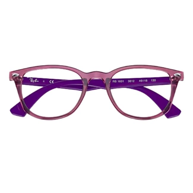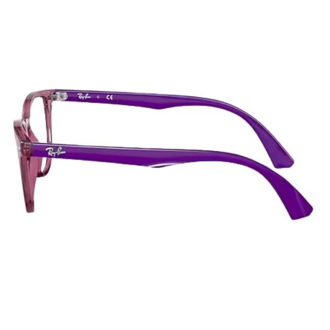 The Ray-Ban Square Junior Optics 0RY1601 introduce a vibrant, playful aesthetic to the world of children’s eyewear. Specifically, this model features a versatile square silhouette that suits growing faces perfectly, providing a look that is both smart and cool. Moreover, the colour code 3813 creates a dynamic style by pairing a “Transparent Fuchsia” (Fuxia) front with contrasting violet temples. Therefore, the Ray-Ban Square Junior Optics 0RY1601 stand out as the ideal accessory for kids who want eyewear that shines with personality.