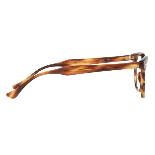 The Ray-Ban State Street Optics 0RX5486 introduce a striking geometric edge to the classic Wayfarer family. Specifically, this model, known as the “State Street,” features a chunky square silhouette with a distinct flat top brow that commands attention immediately. Moreover, the “Striped Havana” finish adds depth and texture, blending warm browns and ambers in a vertical pattern that catches the light beautifully. Therefore, the Ray-Ban State Street Optics 0RX5486 stand out as the ultimate accessory for those who want their eyewear to project both vintage charm and modern boldness.