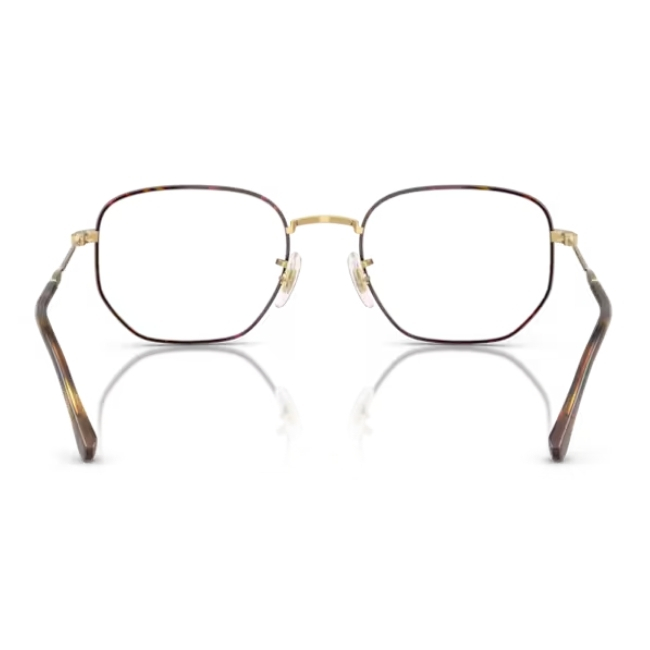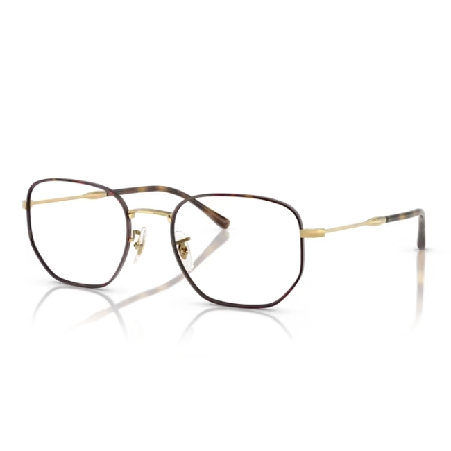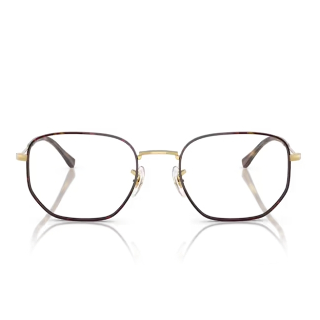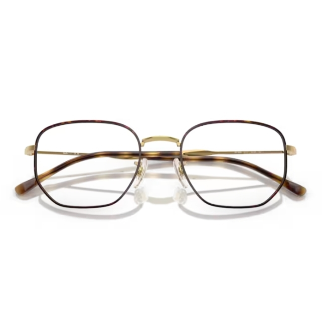 The Ray-Ban Square Eyeglasses 0RX6496 3177 51 offer a contemporary update to the classic metal wireframe. Specifically, this model features a unique “irregular” square silhouette that softens sharp angles, making it a versatile choice for many face shapes. Moreover, the “Havana on Arista” finish adds a layer of sophistication by tracing the gold metal rims with a warm tortoise pattern. Therefore, it is the perfect accessory for those who want eyeglasses that are both minimalist and distinctive.