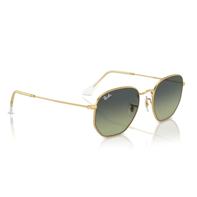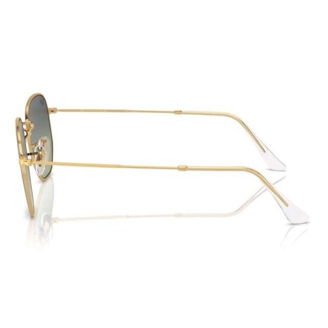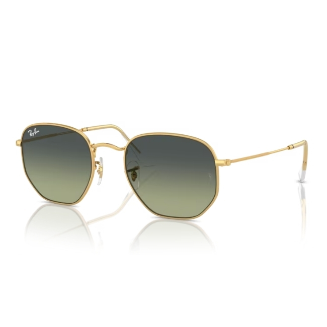 The Ray-Ban Hexagonal Sunglasses 0RB3548 001/BH54 introduce a revolutionary shape to the world of eyewear. Specifically, this model transforms the classic round metal profile into a striking geometric design. Moreover, the Arista gold frame adds a layer of vintage luxury that captures attention instantly. Therefore, it is the perfect accessory for those who want to stand out with understated elegance.