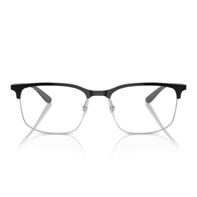 The Ray-Ban Rectangular Optics 0RX6518 offer a sharp, contemporary update to the classic metal wireframe. Specifically, this model features a streamlined rectangular silhouette with a distinct two-tone design that mimics a brow line style. Moreover, the “Black on Silver” finish creates a sophisticated contrast by pairing a bold black top rim with sleek silver lower rims and bridge. Therefore, the Ray-Ban Rectangular Optics 0RX6518 are the perfect accessory for those who want a professional look that commands attention without being overpowering.