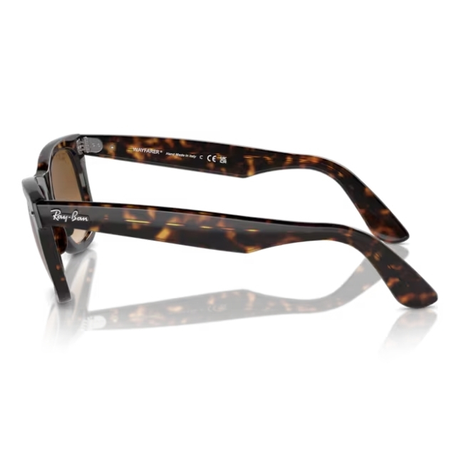 The Ray-Ban Wayfarer Original Sunglasses 0RB2140 902/5150 provide a refined and artistic alternative to the standard solid-colour models. Specifically, this version features the legendary Original Wayfarer silhouette in a timeless tortoise acetate frame. Moreover, the rich interplay of amber and dark brown tones creates a warm aesthetic that catches the light beautifully. Therefore, it is the ideal choice for those who appreciate a softer, more textured look with a distinct vintage vibe.