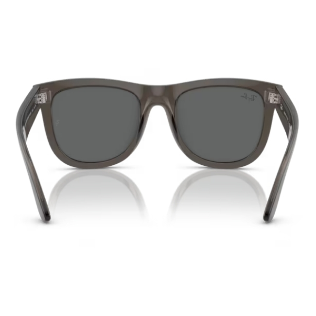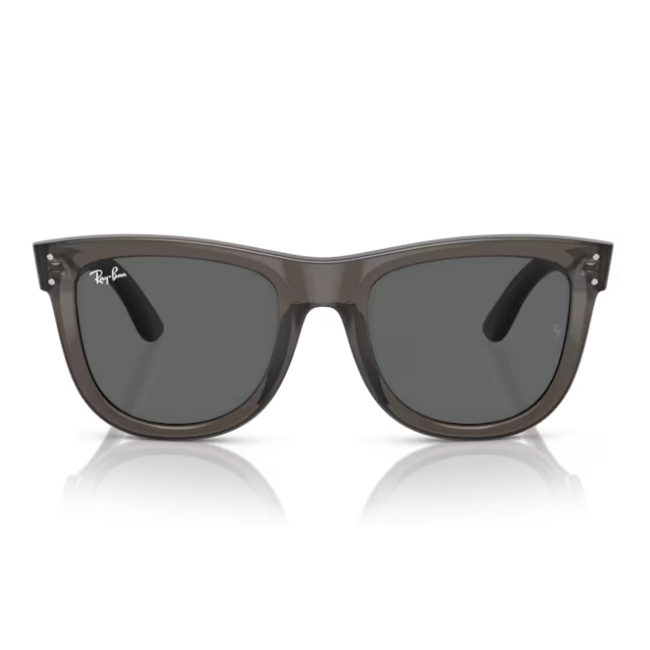 The Ray-Ban Wayfarer Reverse Sunglasses 0RBR0502S 6707GR53 challenge the status quo with a daring new profile. Specifically, this model reimagines the classic Wayfarer silhouette by utilizing the industry’s first inverted lens that curves inward toward the face. Moreover, the transparent dark grey frame creates a smoky, monochromatic look that feels exceptionally modern. Therefore, it is the perfect choice for those who want to push the boundaries of style.