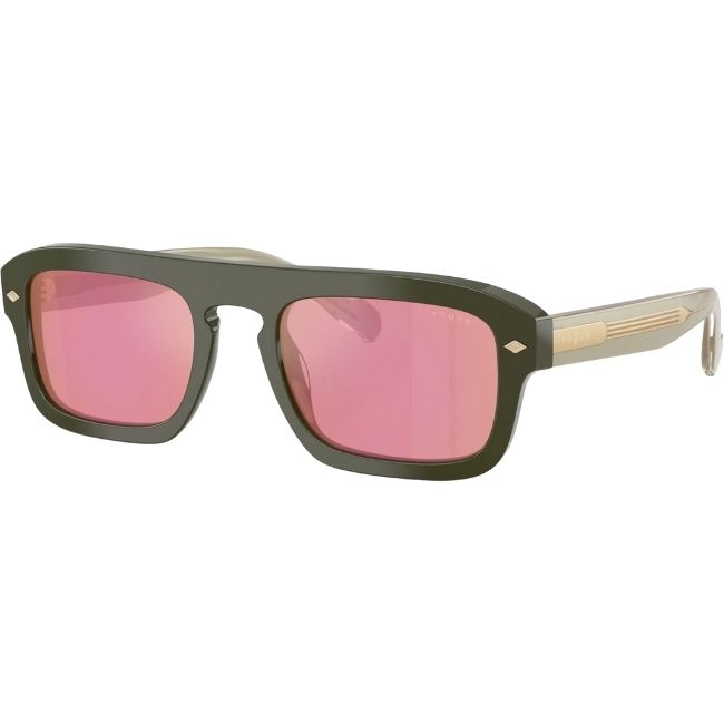 Define your look with these striking Vogue 0VO5620S geometric sunglasses. The transparent olive frames offer a fresh, modern aesthetic. They complement your style like a piece of fine jewellery.